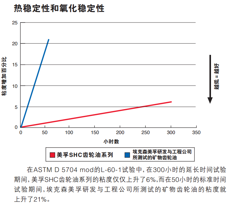 美孚SHC齿轮油系列产品采用先进的添加剂专利技术,设计为工业用齿轮箱提供针对胶合等各种磨损类型的杰 出的耐磨保护,并且具有高级的防微点蚀疲劳性能。此外,与埃克森美孚研发与工程公司所测试的矿物齿轮润滑油 产品相比,美孚SHC齿轮油系列能为齿轮箱的滚动元件轴承提供更好的润滑。美孚SHC齿轮油系列产品具有优秀 的防锈和防腐蚀性能,即使在湿润的环境中也不会有导致精滤清器堵塞的趋势。同时,在高温环境下,美孚SHC齿轮油 系列产品具有优异的黑色金属及有色金属相容性能。